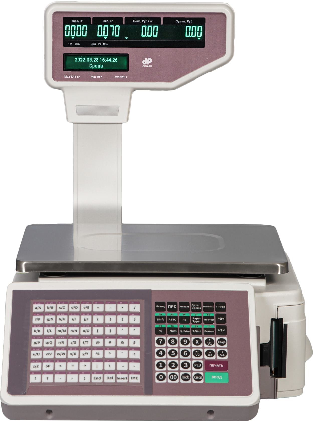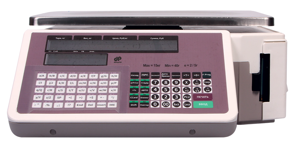 | Память | Всего 16МБ, под загрузку данных 8МБ (до 10 000 PLU) | |